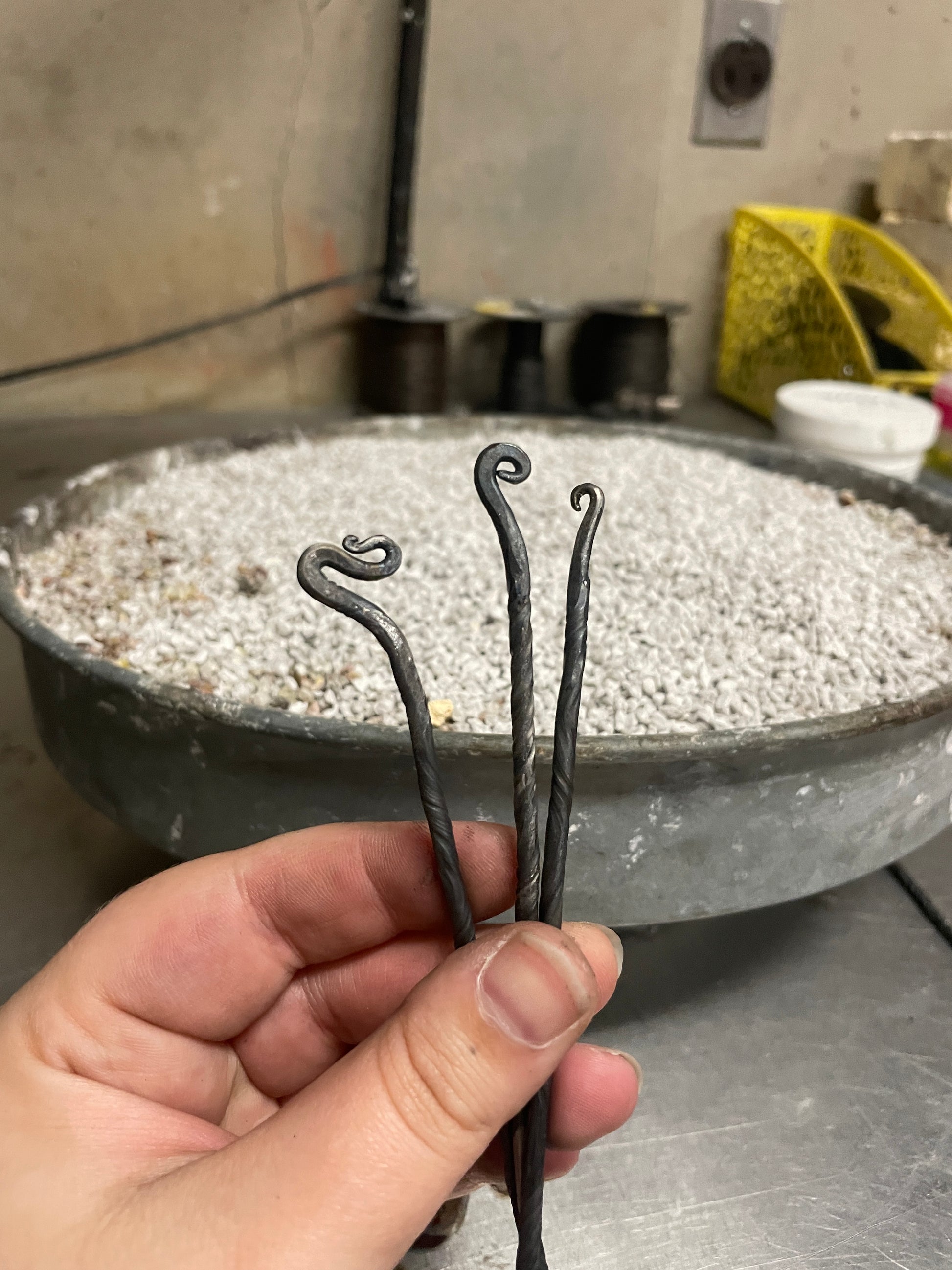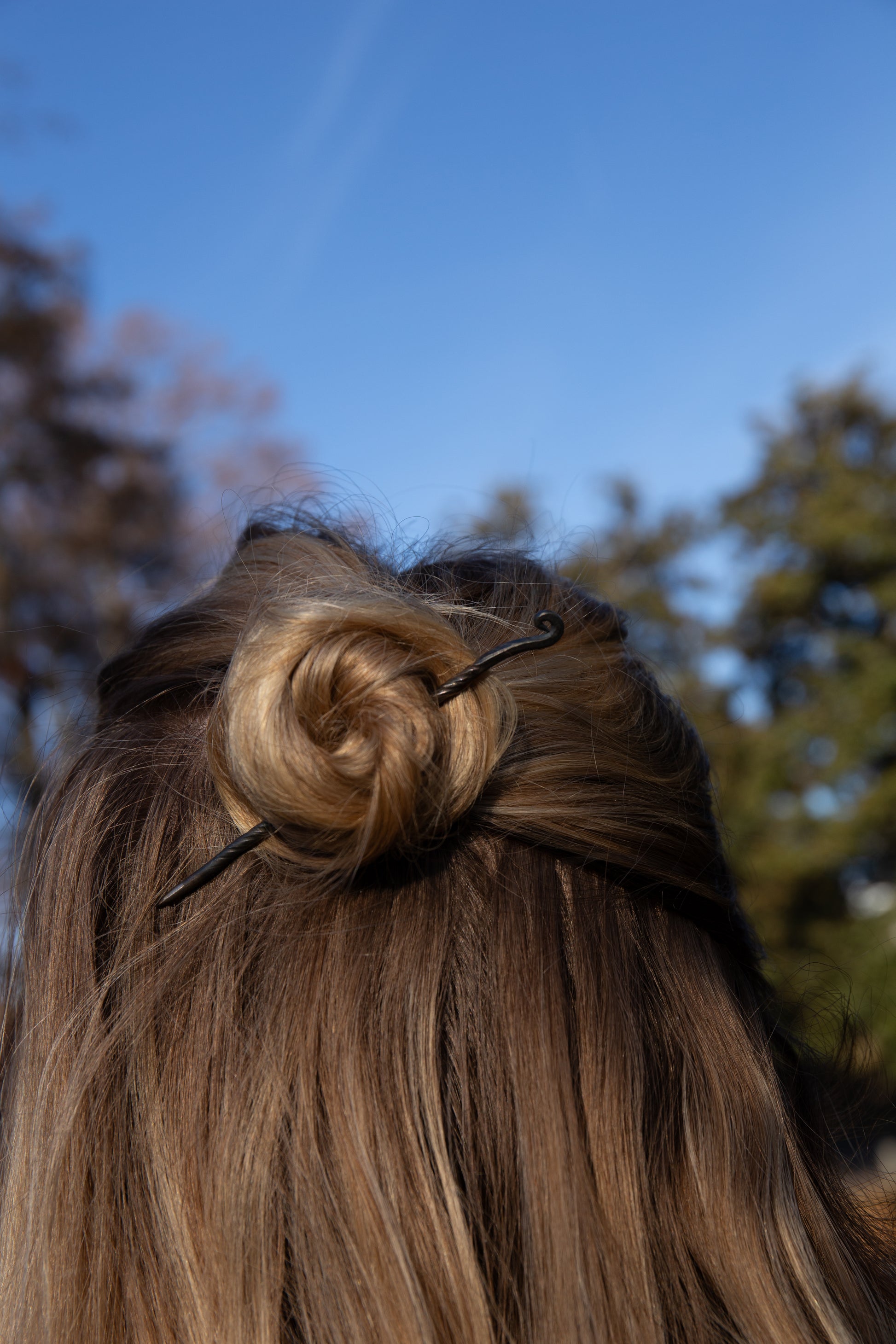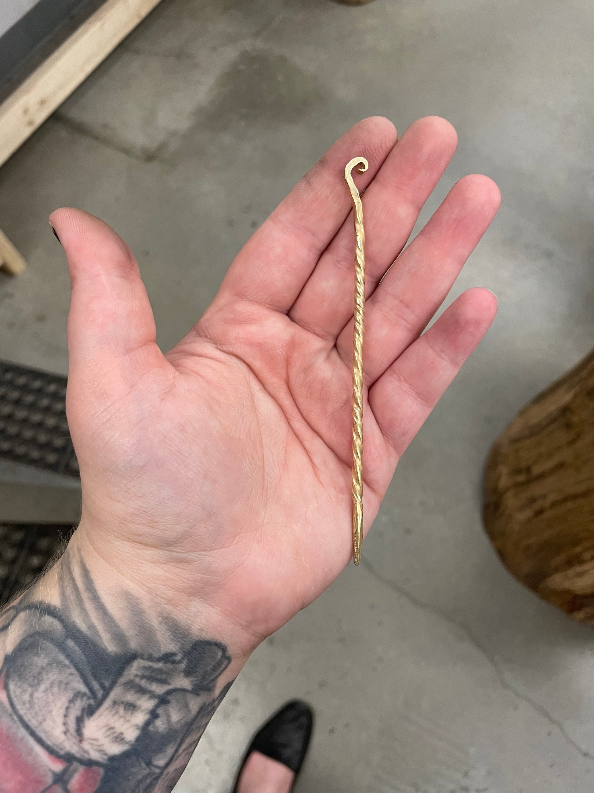 Using traditional forging techniques (but small), I make these hair sticks one by one! I can make them to your preferred length and in either brass, copper, or steel. If you’d like one in sterling, just contact me!