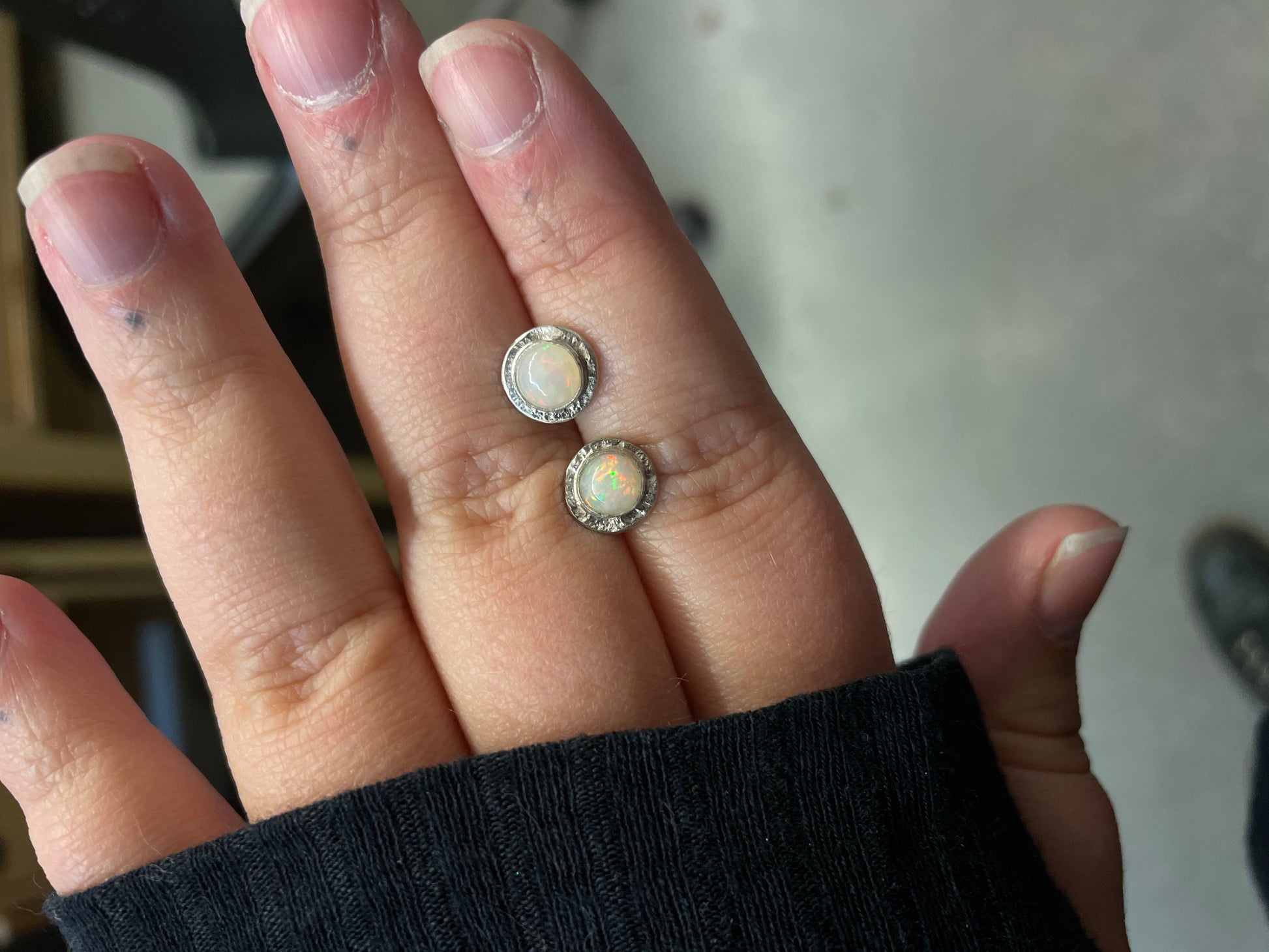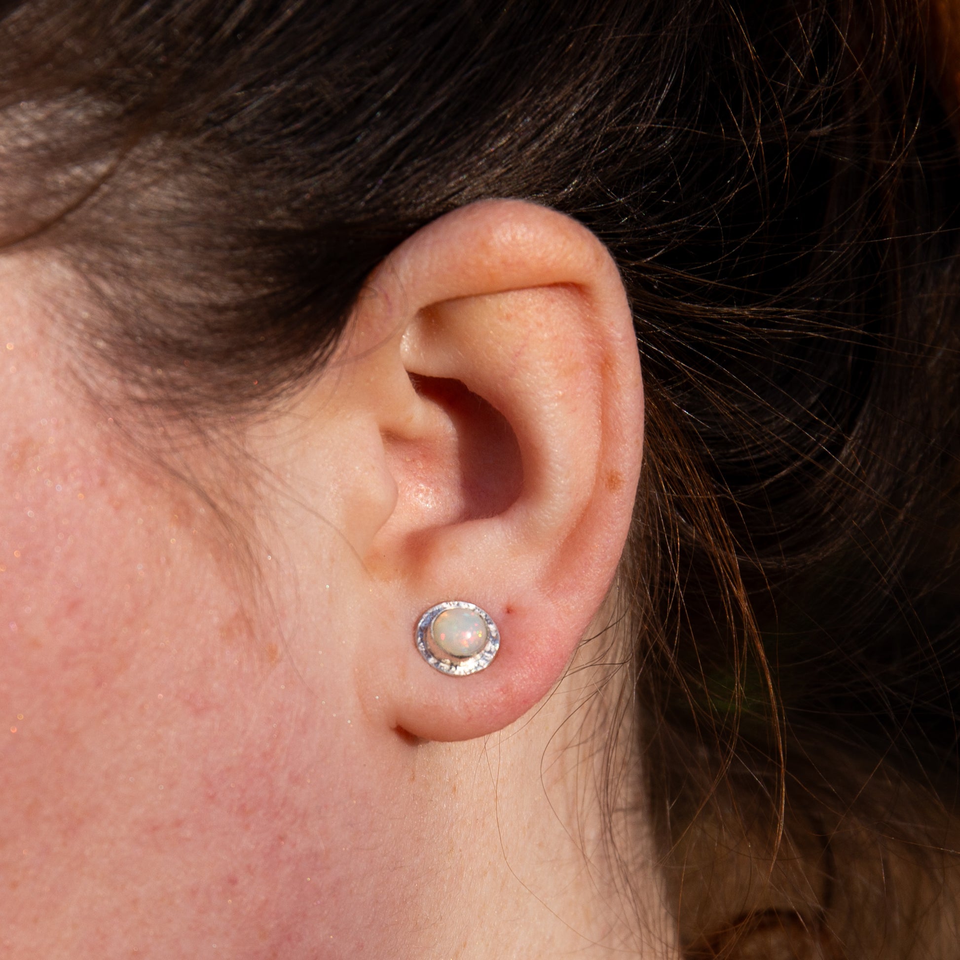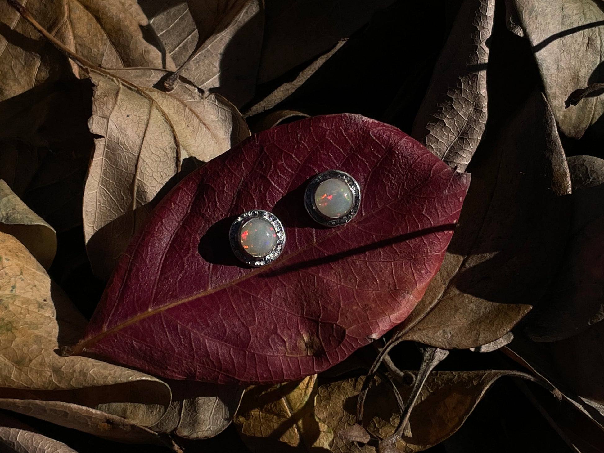 These stud earrings feature 6mm welo/ethiopian opals. Because of the nature of these stones, please try to remember to take them off before showering or submerging in water!