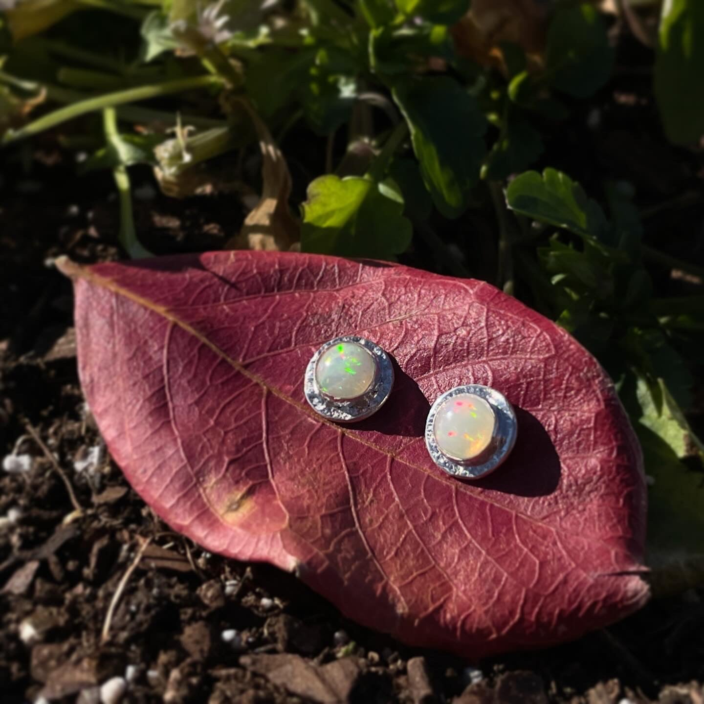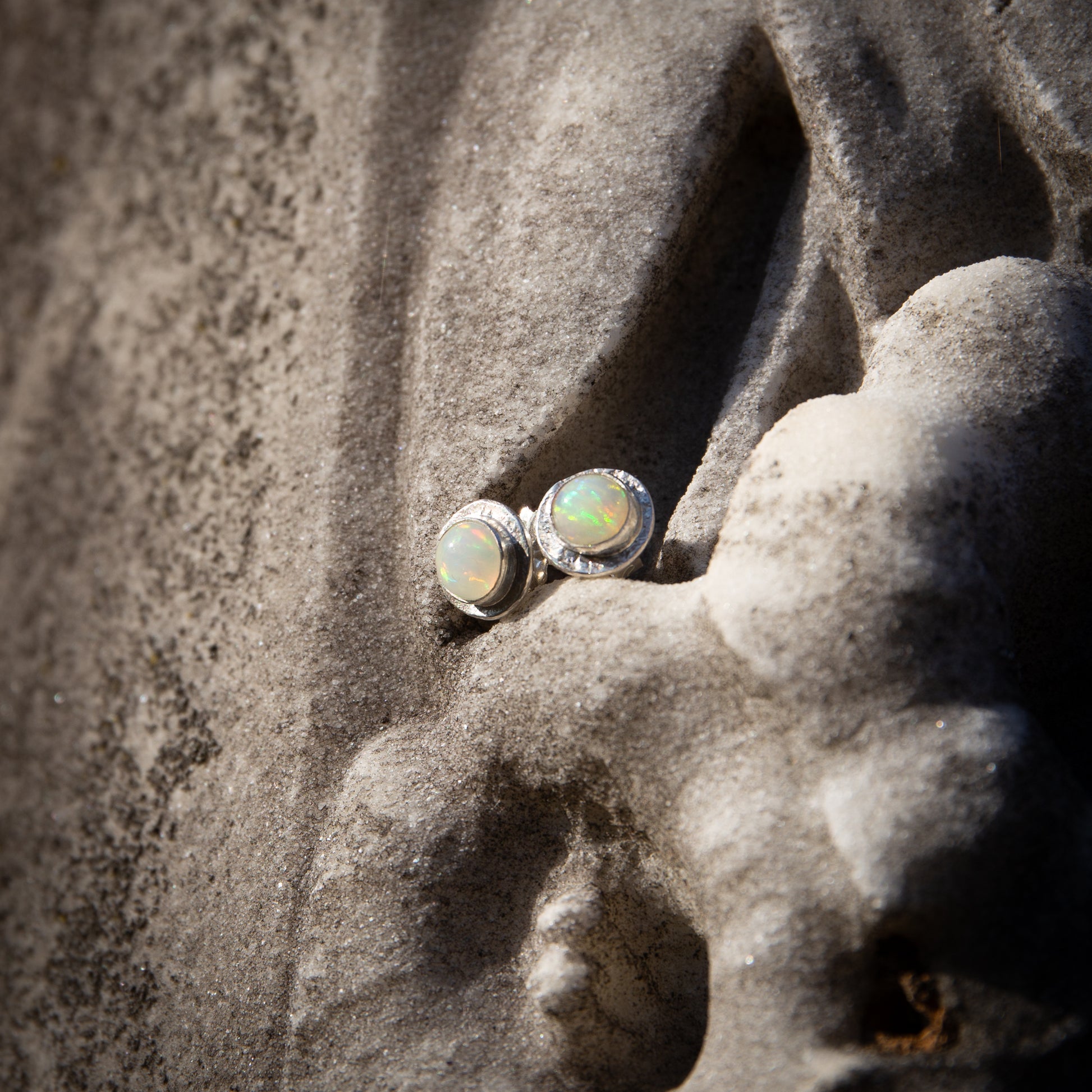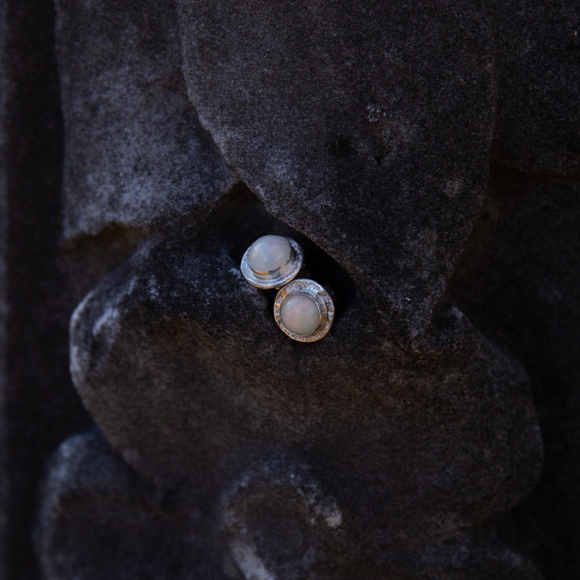 These stud earrings feature 6mm welo/ethiopian opals. Because of the nature of these stones, please try to remember to take them off before showering or submerging in water!