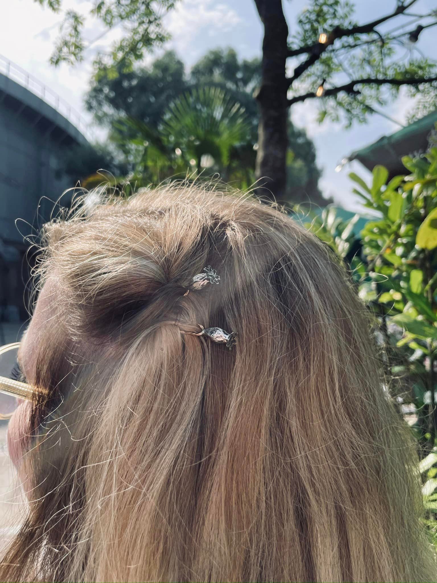 These hairpins feature sterling silver poppy pods that I casted. They were then fabricated onto bronze twisted pins to allow to maximum hold in your hair.